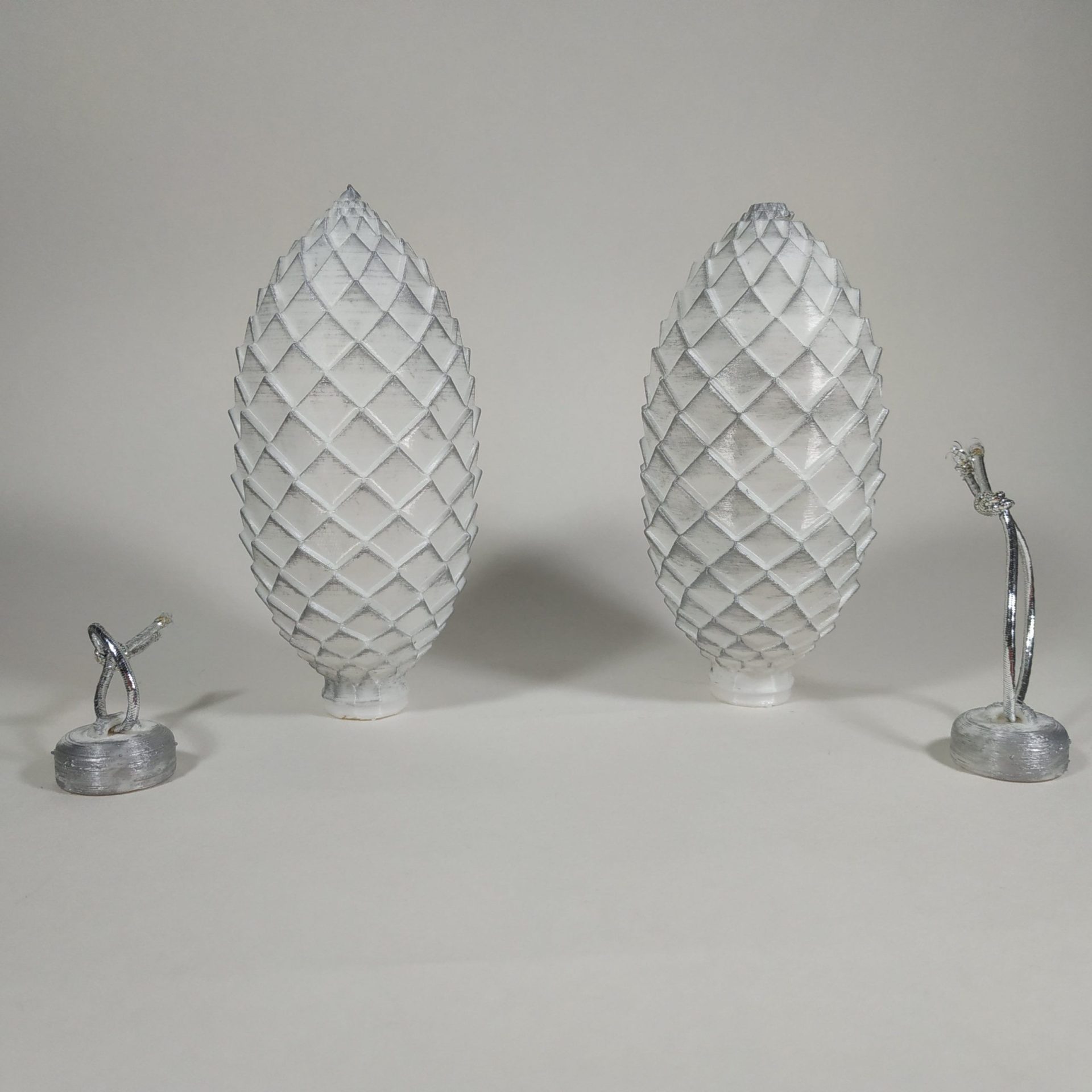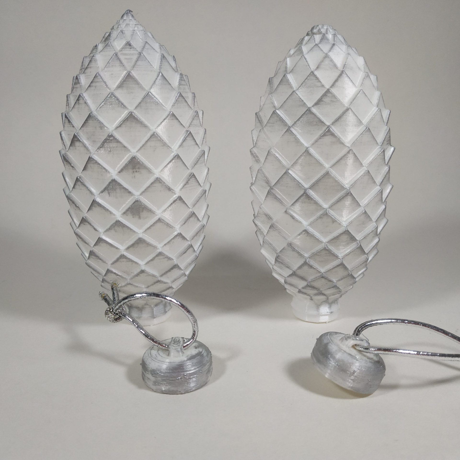 Adorno Navideño con forma de piña color blanco decorada, medidas: alto 117 mm, ancho 50mm