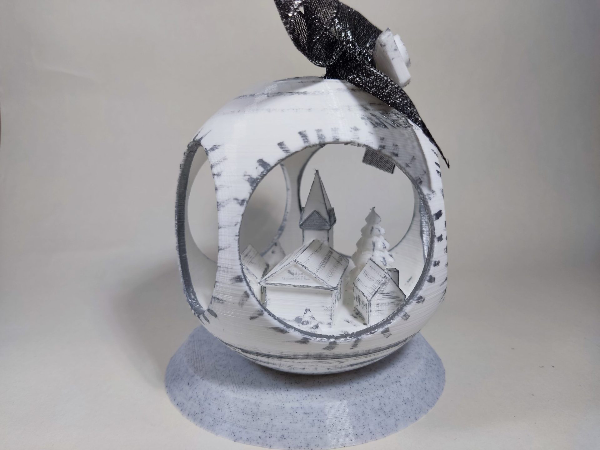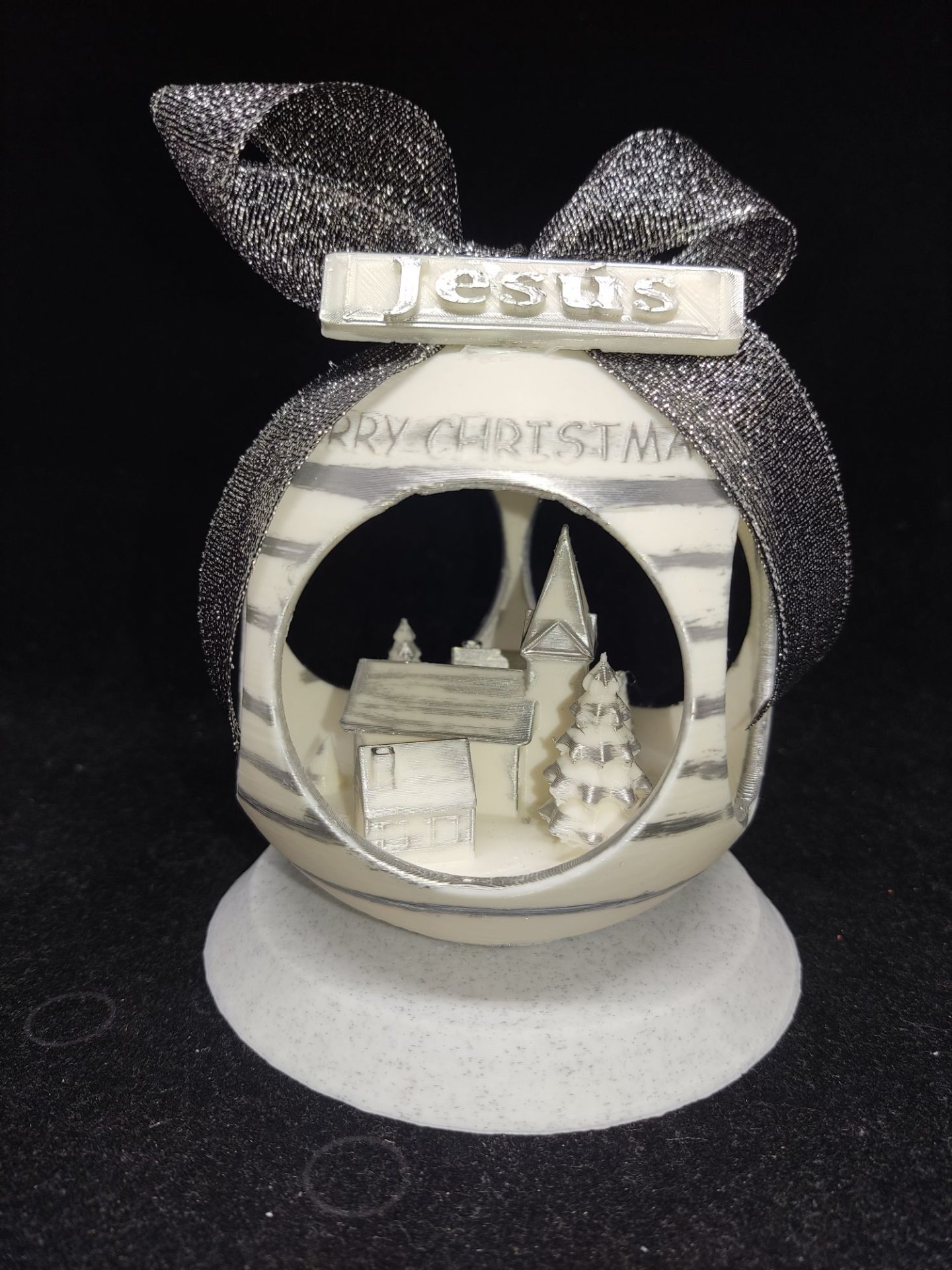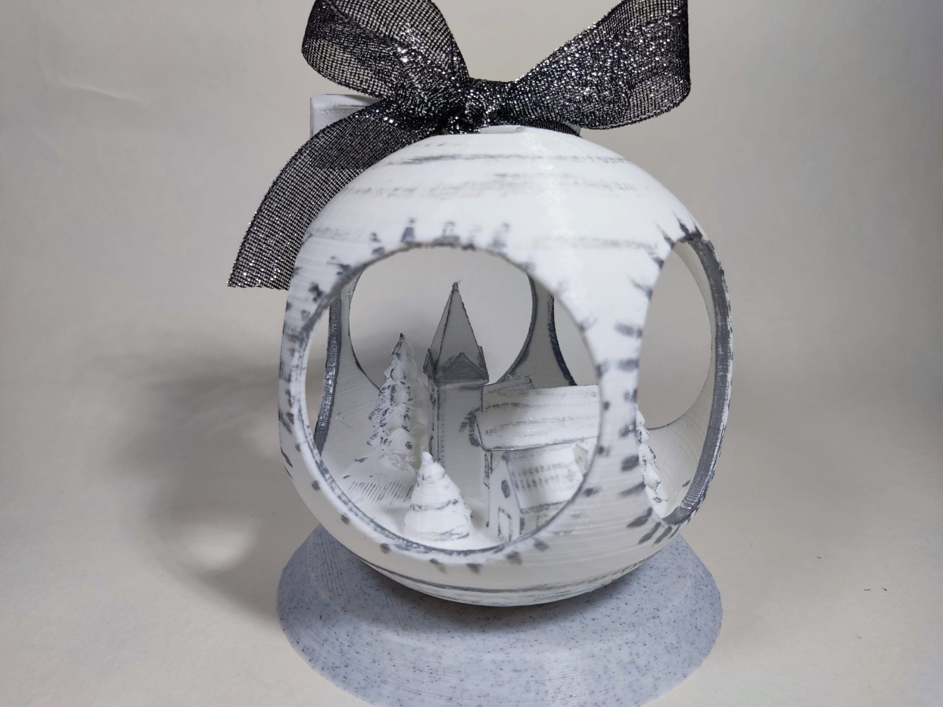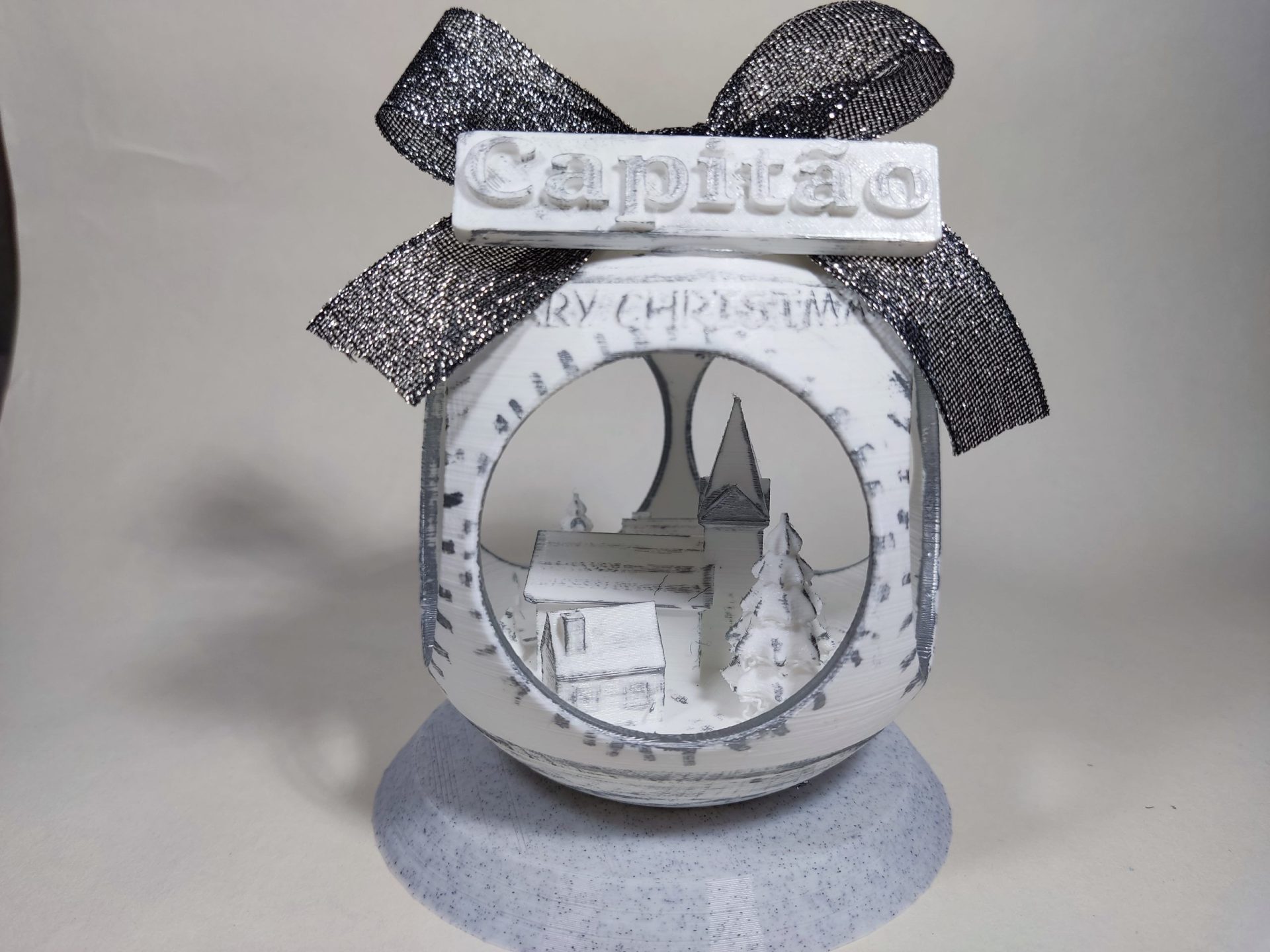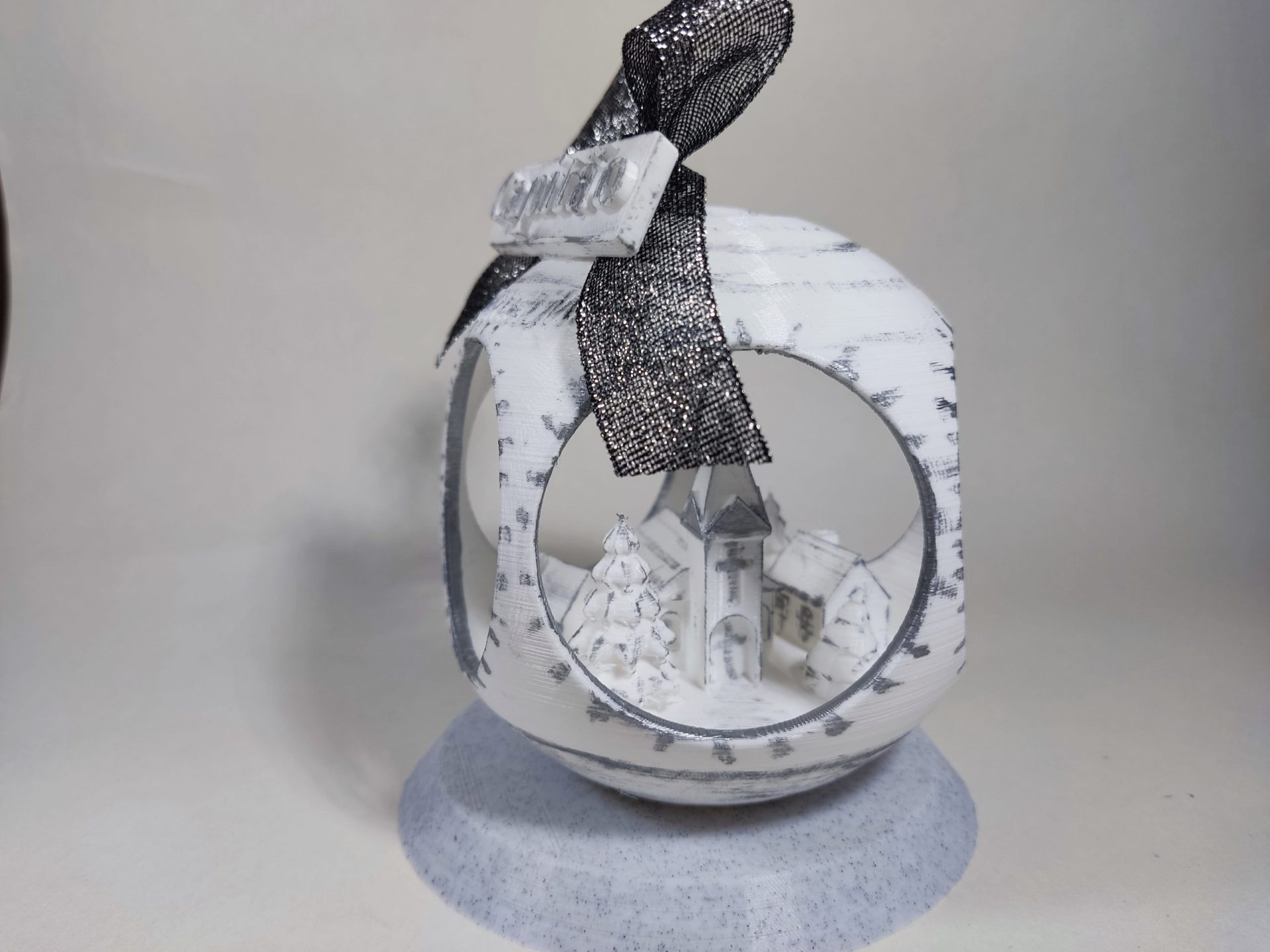 Bola de Navidad con Pueblo dentro Color Plata, con peana. (10 cm)