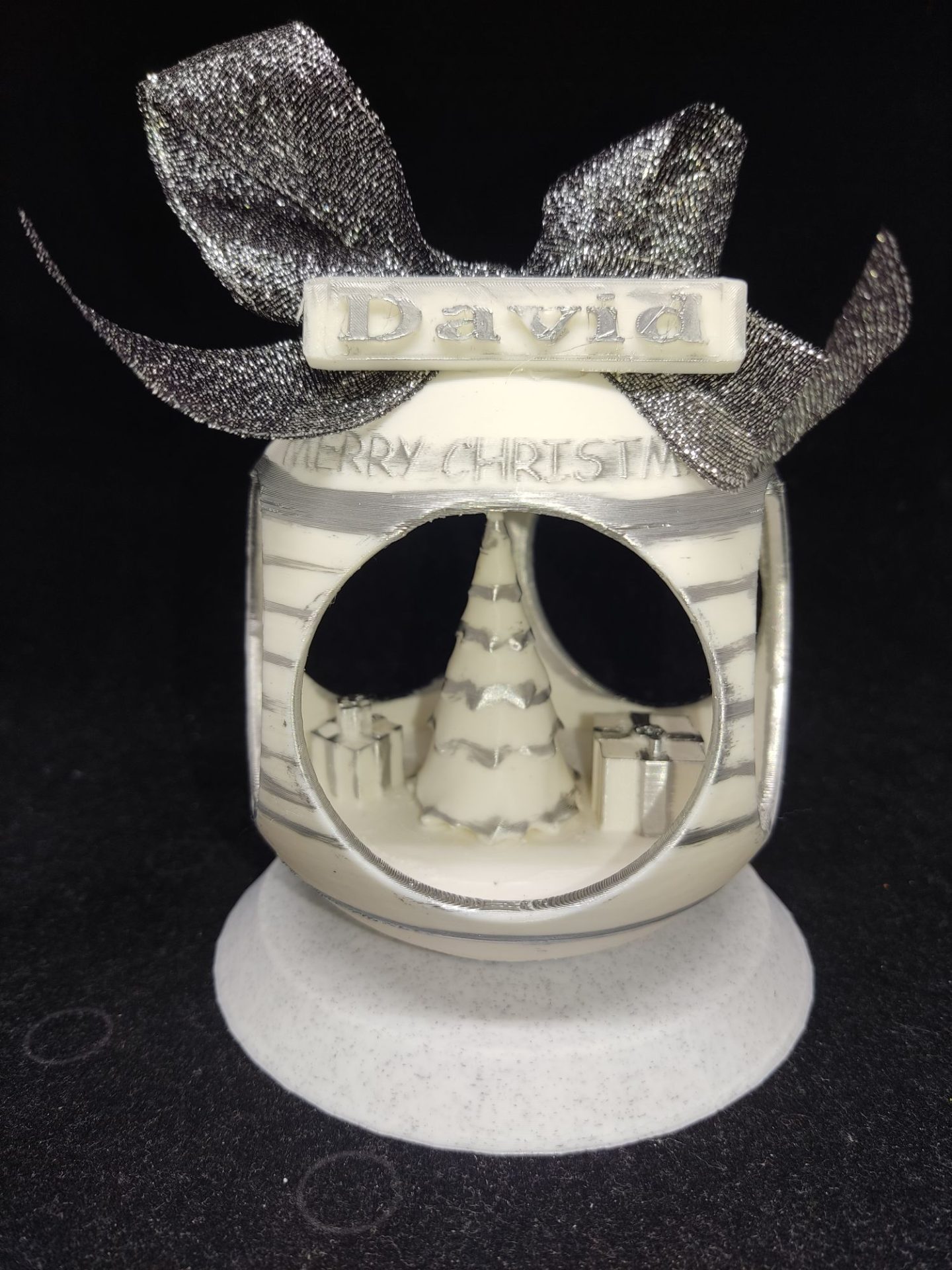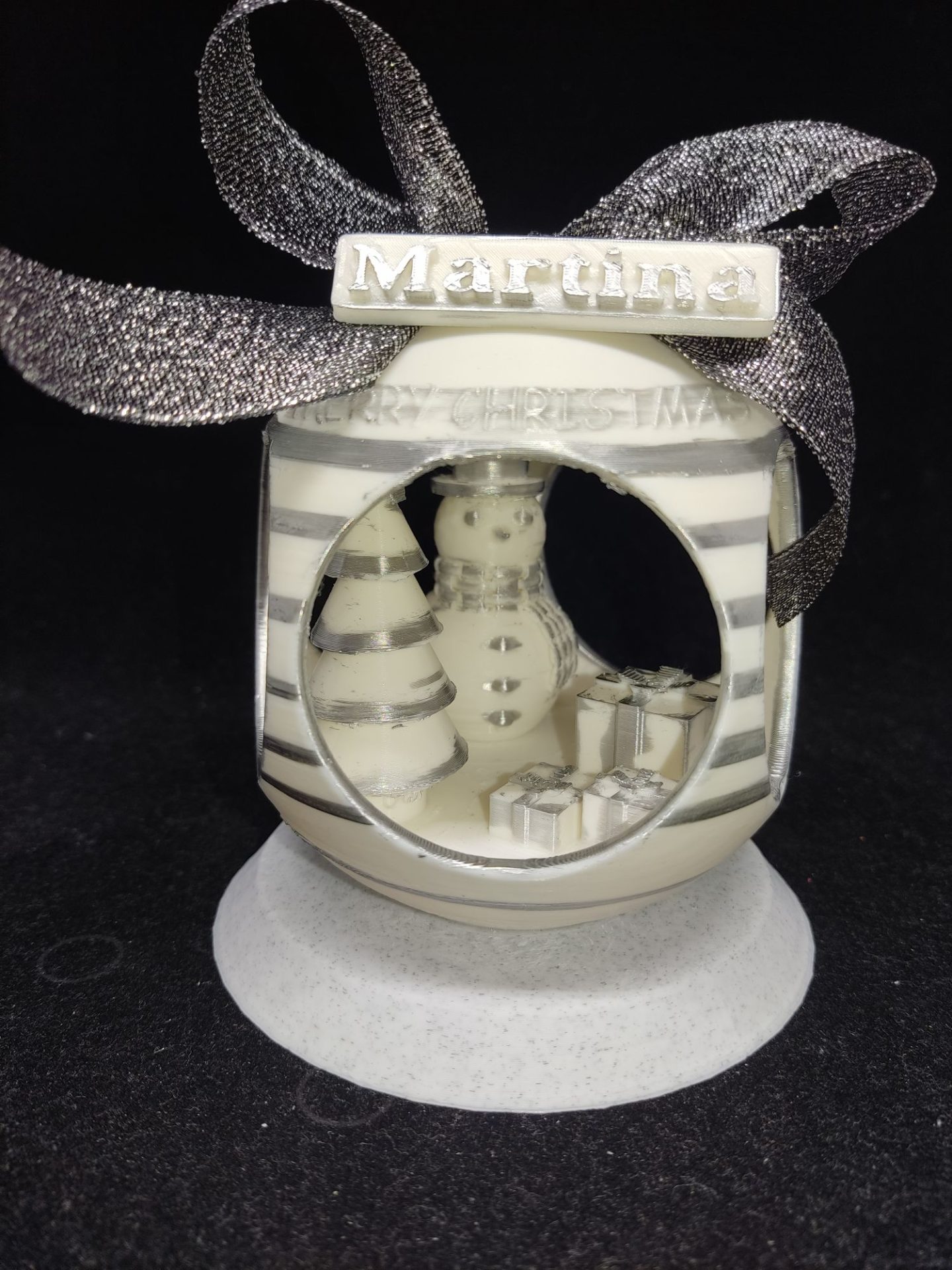 Para decorar  tu árbol o centro de mesa, peana incluida, cartel con nombre personalizable, color del lazo según existencias.