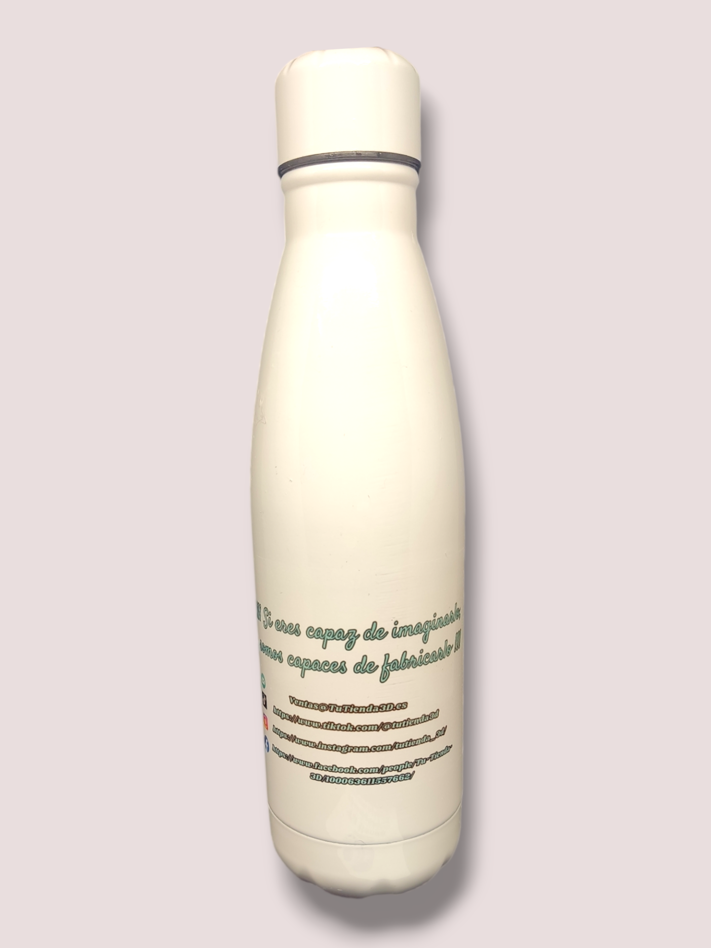 - El acero inoxidable es un material duradero, seguro, ligero y fácil de limpiar. Además, conserva tus bebidas frías durante más tiempo. Tendrás una botella de agua totalmente personalizada que podrás usar durante mucho tiempo.