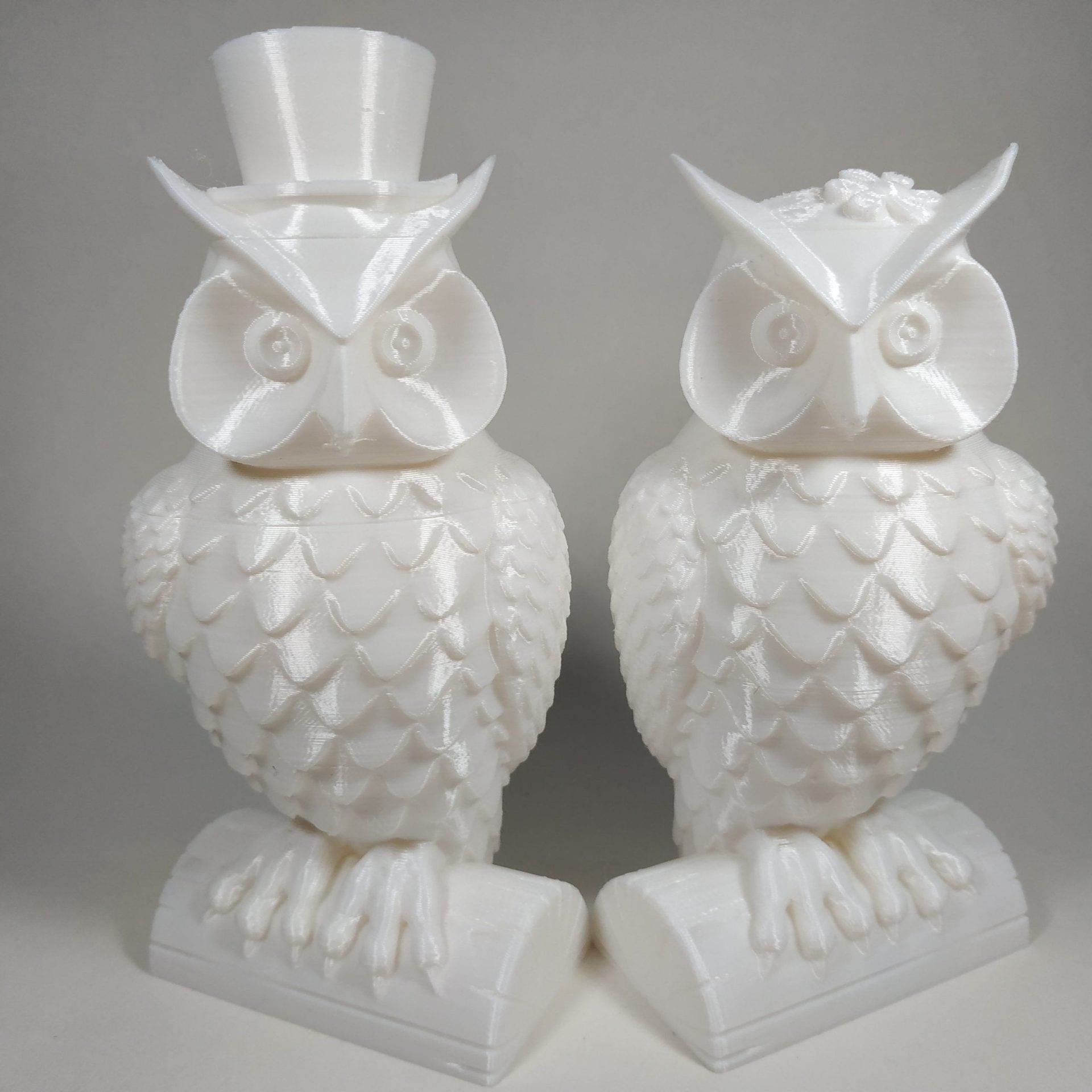 Pareja de Buhos de la suerte balncos decorativos. Macho-hembra, se pueden vender por separado medida: 150 mm de alto.