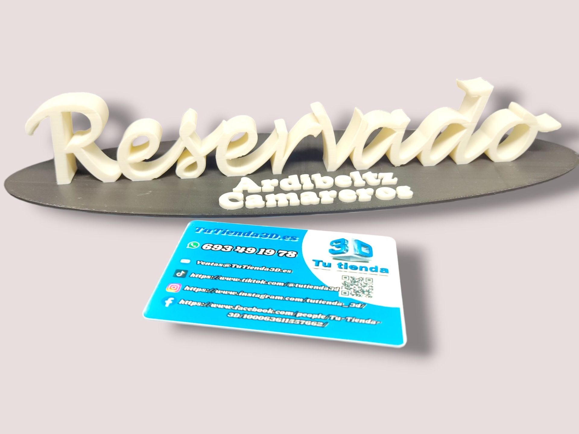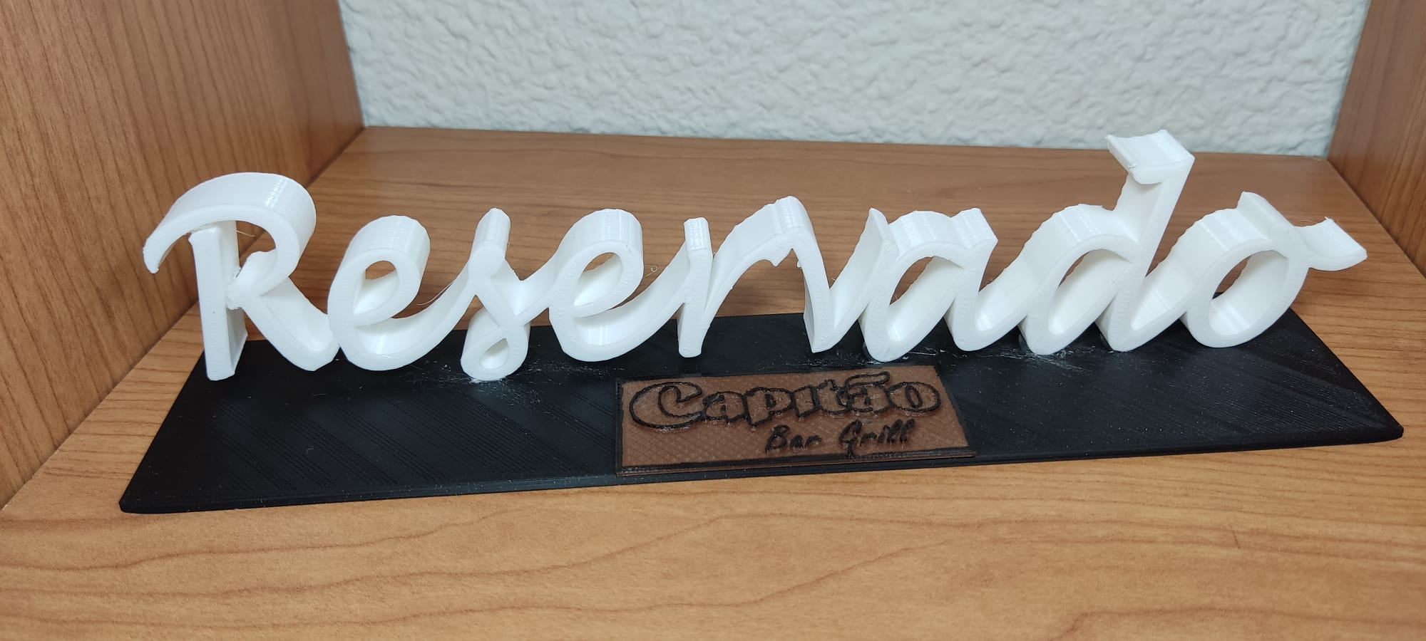 Cartel Reservado para mesa fabricado mediante impresión 3D. Indispensable para reservar las mesas de su bar, restaurante, etc. En Tutienda3D fabricamos, mediante impresión 3D, todo tipo de objetos para el sector de la Hostelería y Restauración. Los carteles de Reservado se pueden fabricar de diferentes formas y colores pudiendo colocar el logotipo corporativo en un lugar visible o como más te guste. Pide presupuesto sin compromiso, hacemos descuentos por volumen.