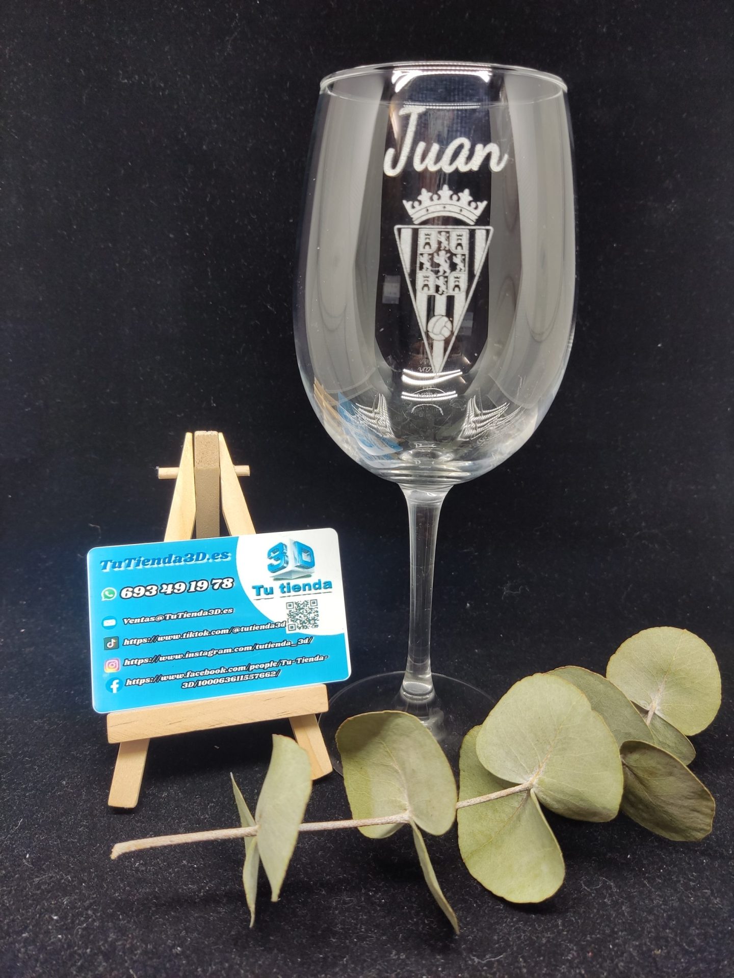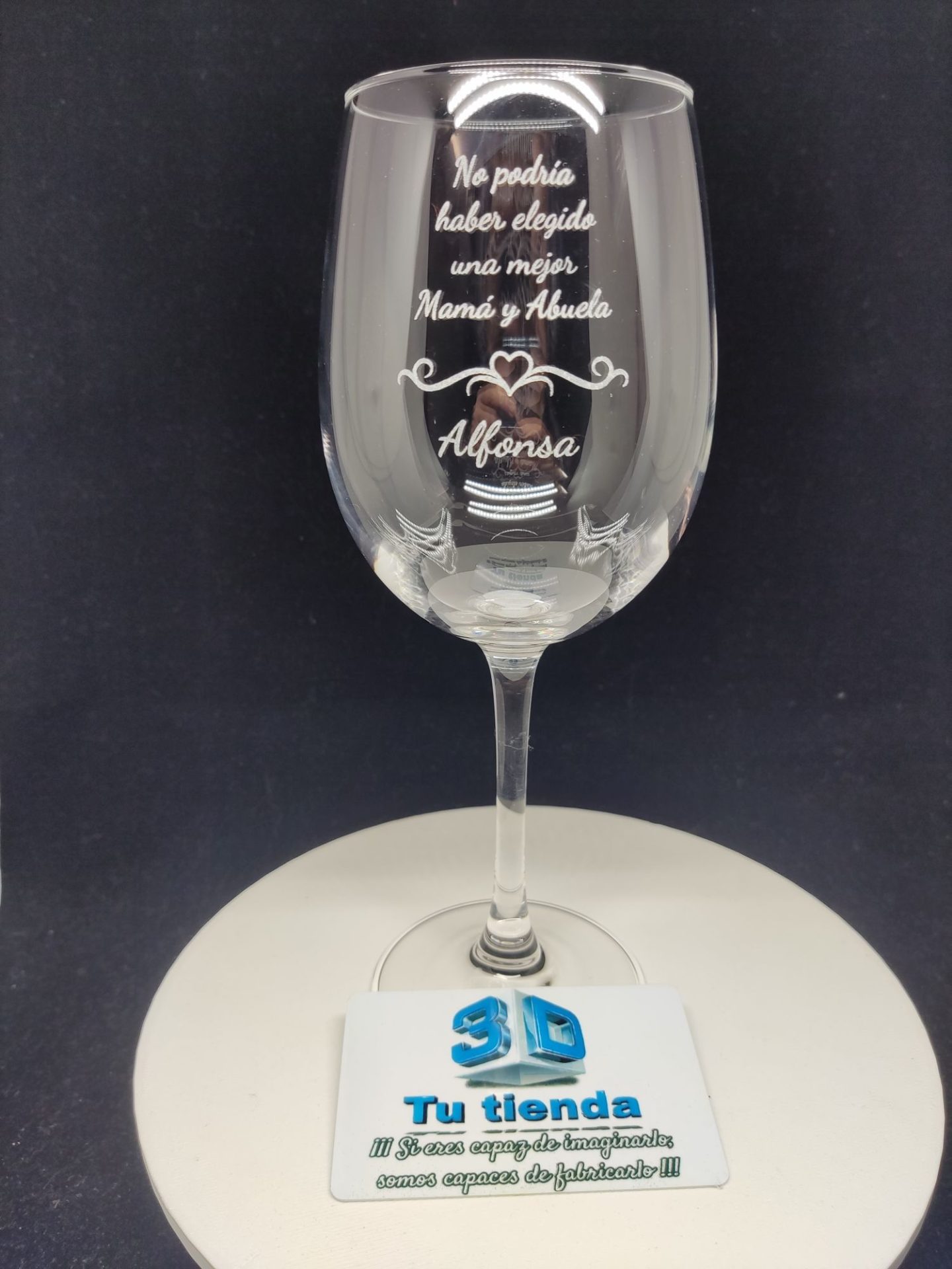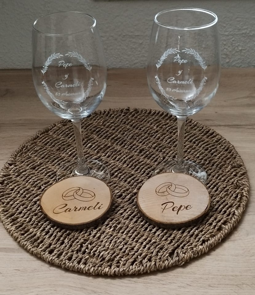 Copa de vino personalizada, grabada con láser.