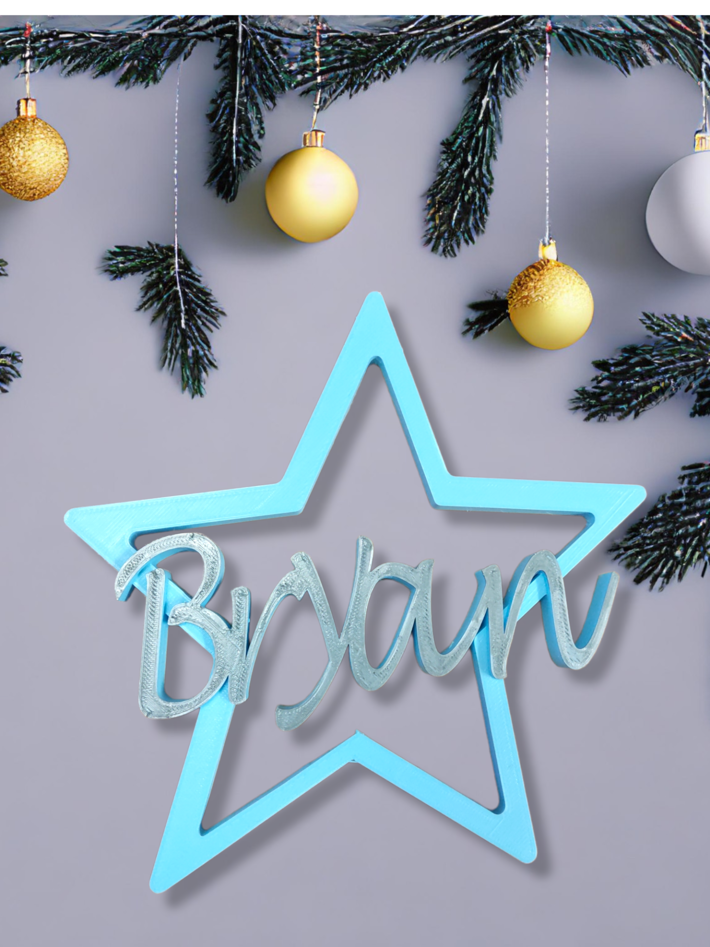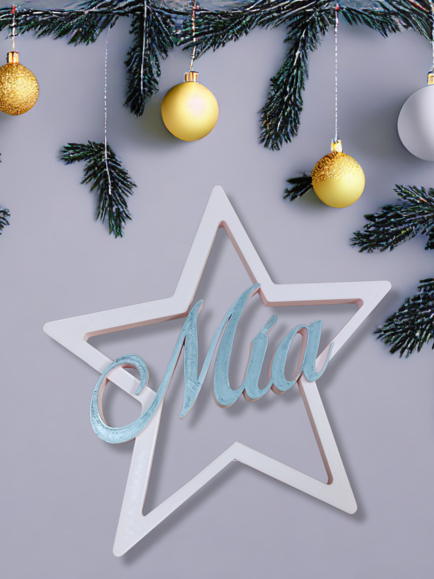 Un adorno único y personalizado, elige el nombre, tamaño y color de la estrella que más te guste.