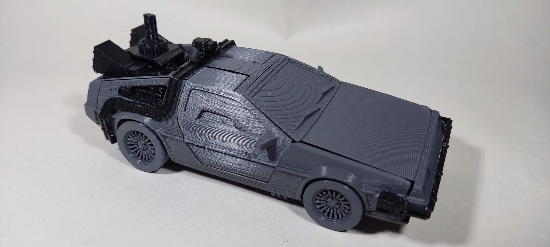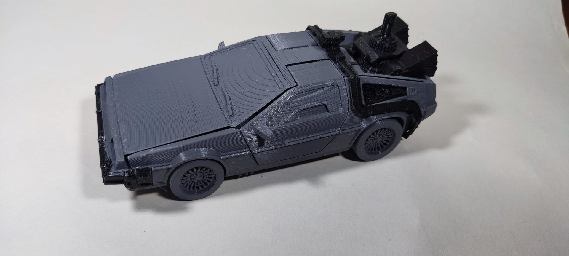 Un modelo en color gris con detalles en negro, pero que podemos imprimirlo en el color que desees o blanco listo para pintar al gusto.