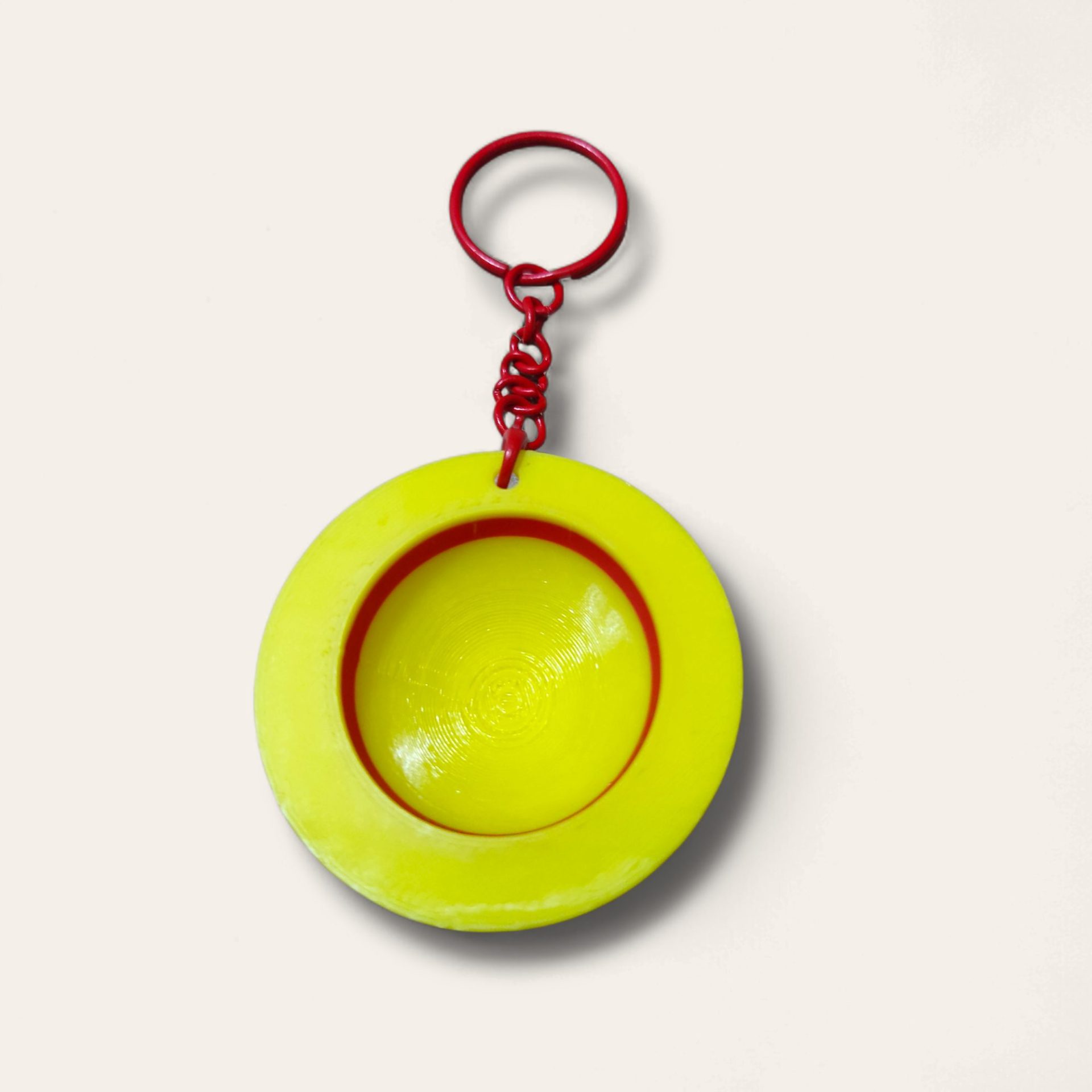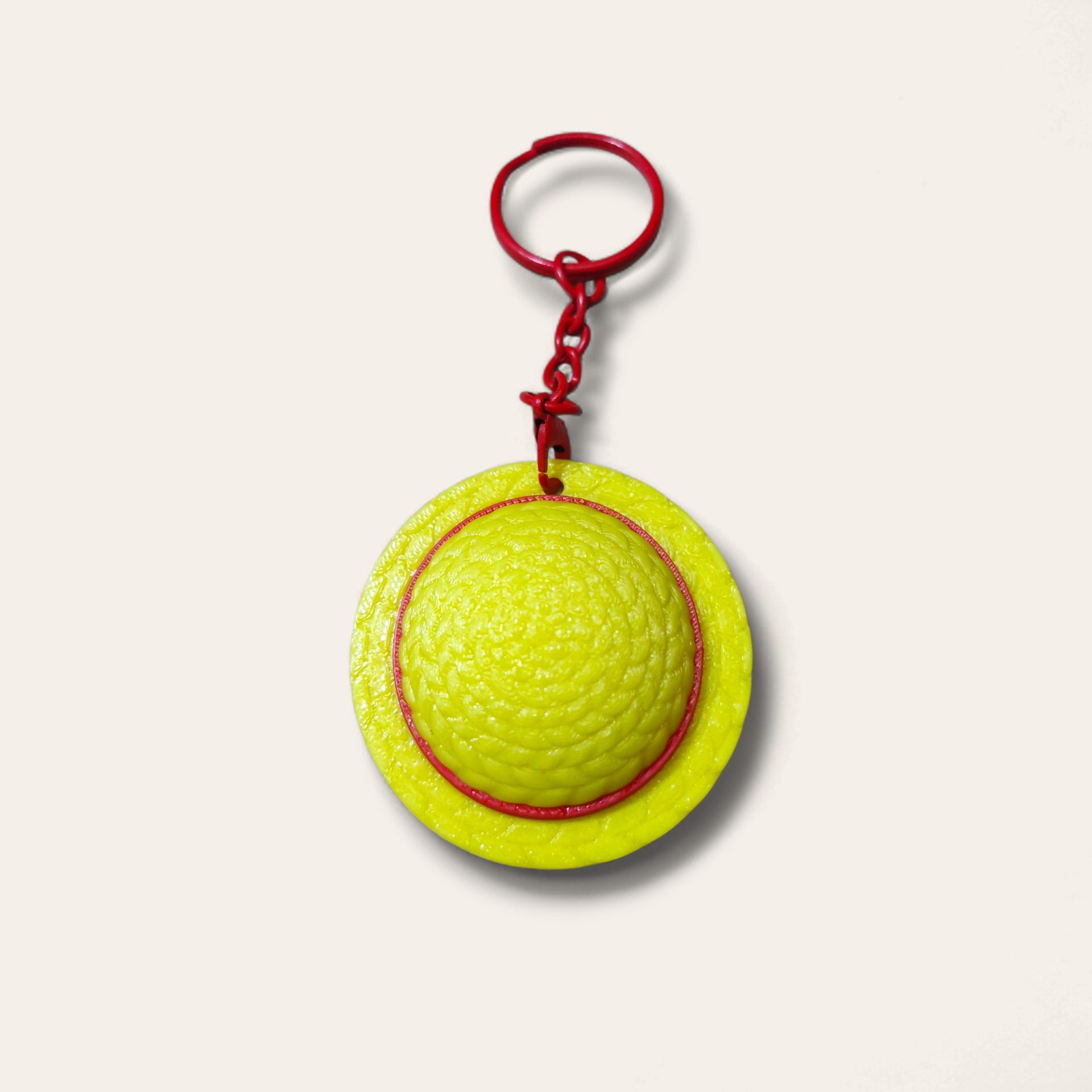 Llavero réplica del inconfundible sombrero de paja de Monkey D. Luffy, protagonista de One Piece.