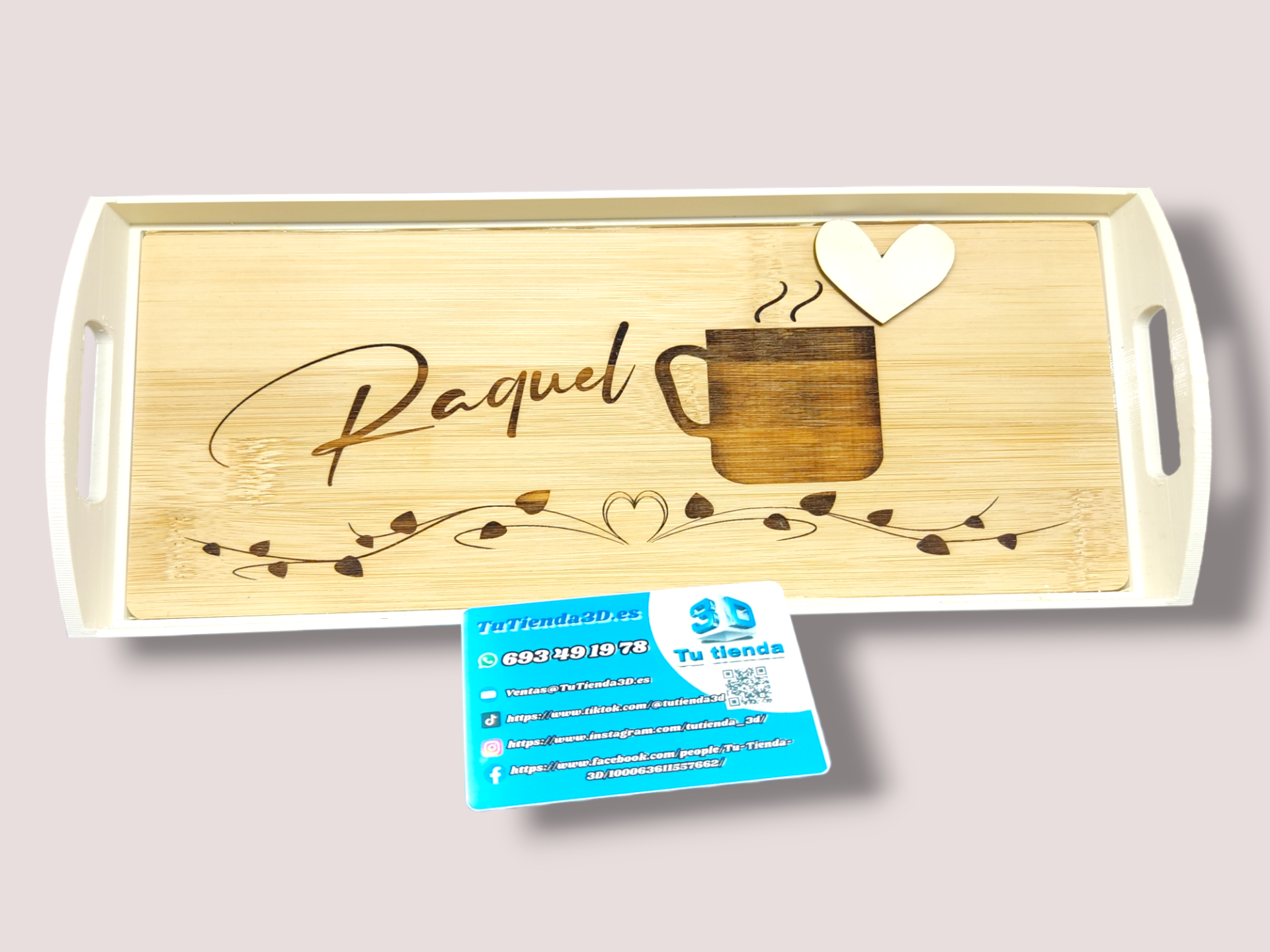 1 Bandeja para infusiones Bambú y 3d grabada a láser (color borde a elegir)