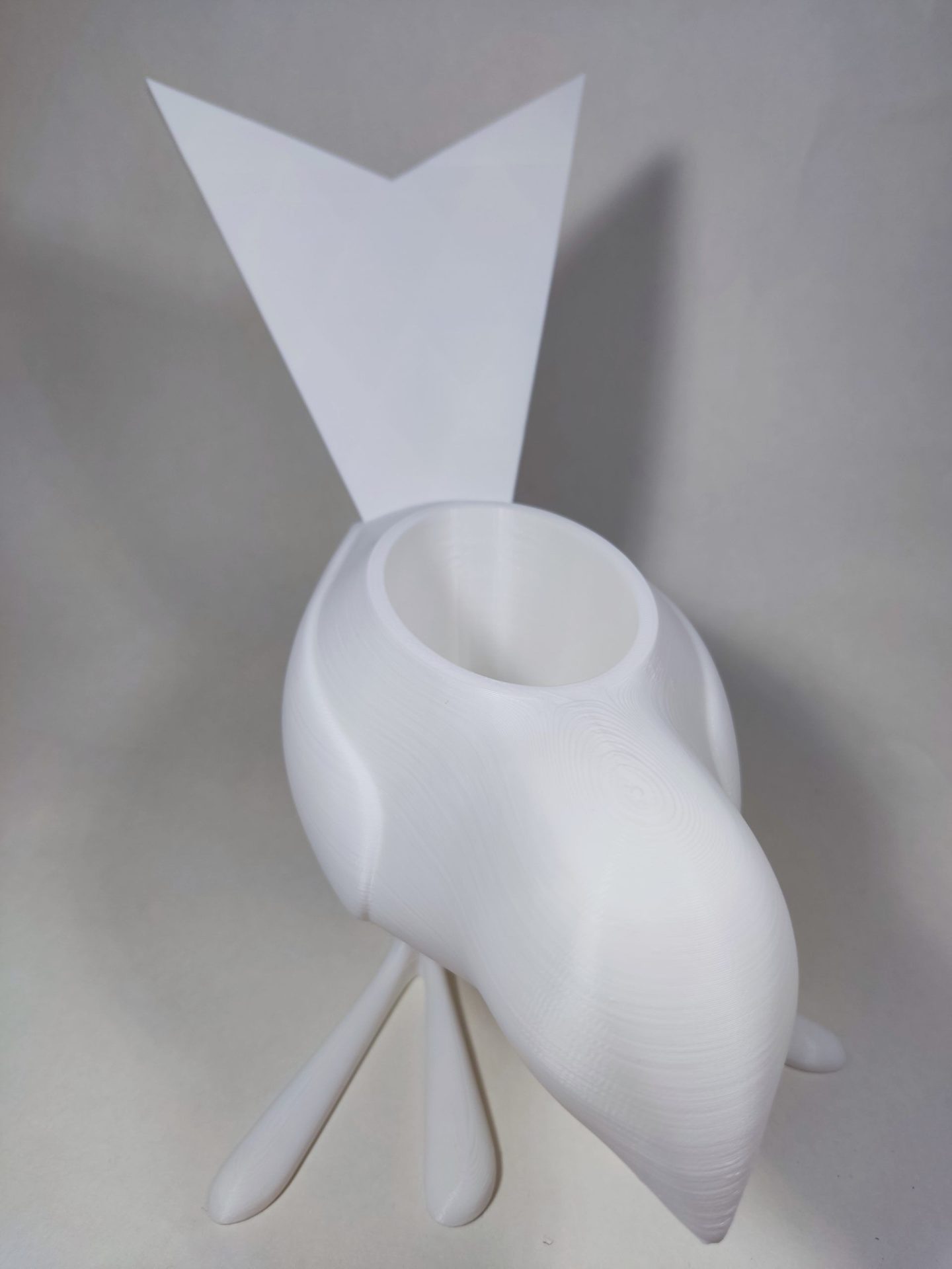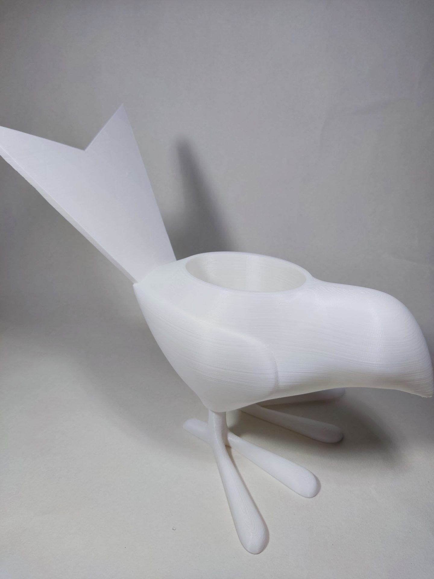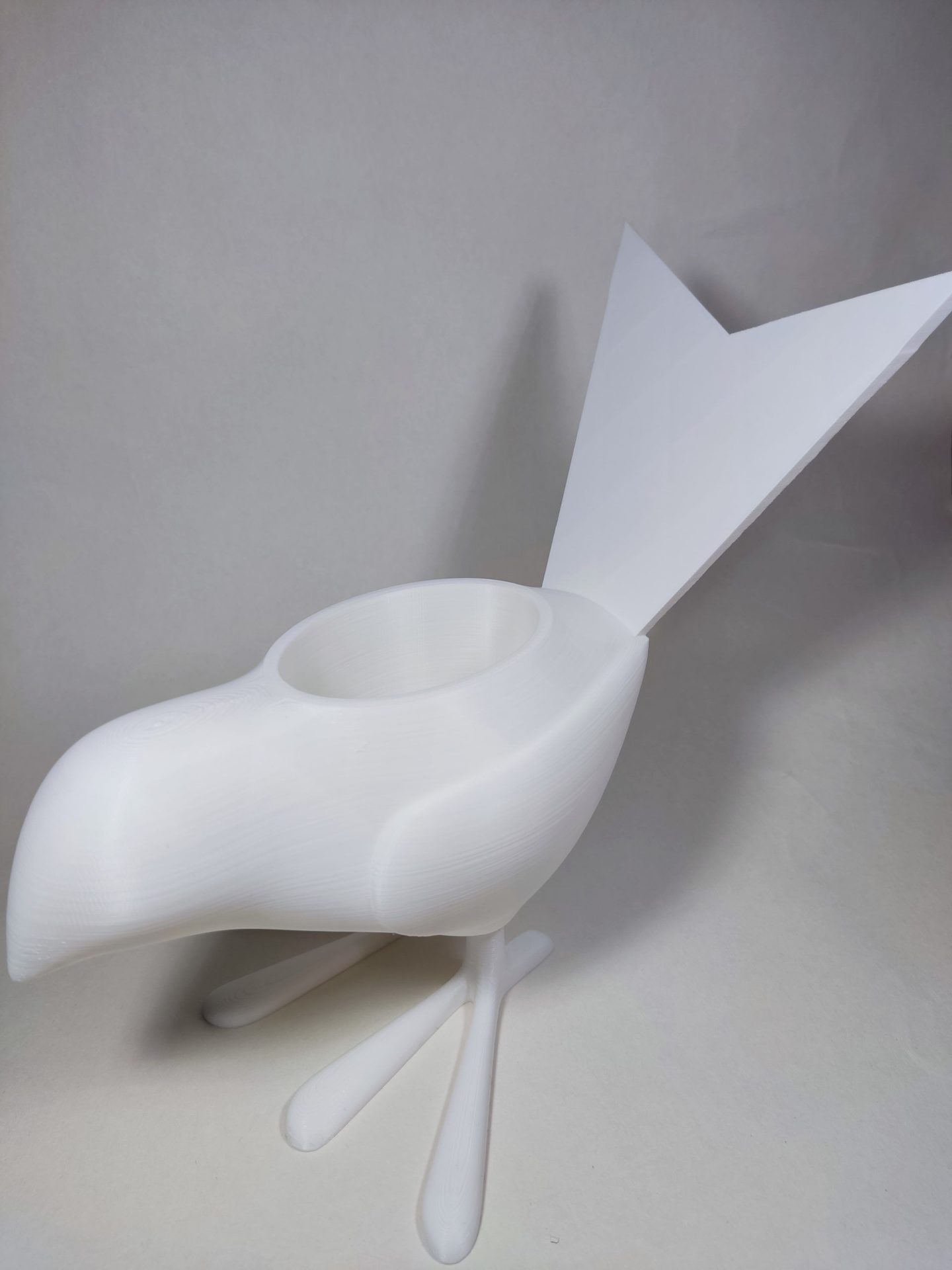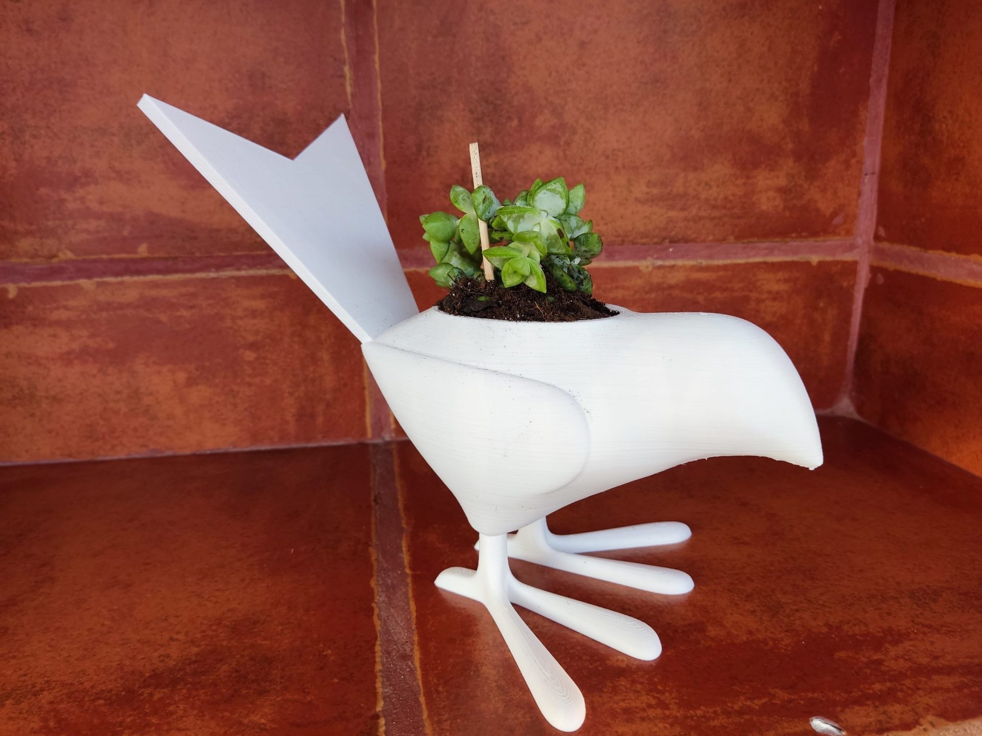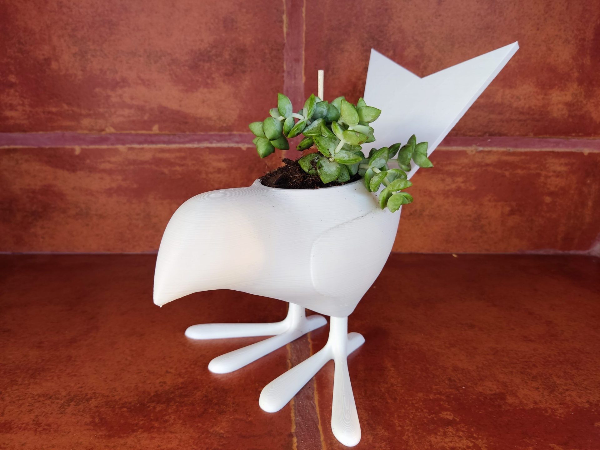 Macetero con forma de pájaro.