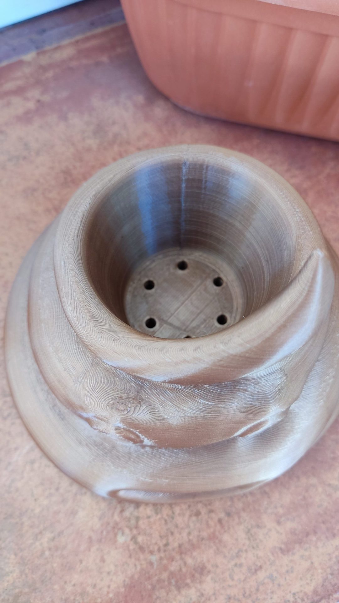 Tamaño del hueco para la maceta 5 cm profundo por 6 cm de diámetro.