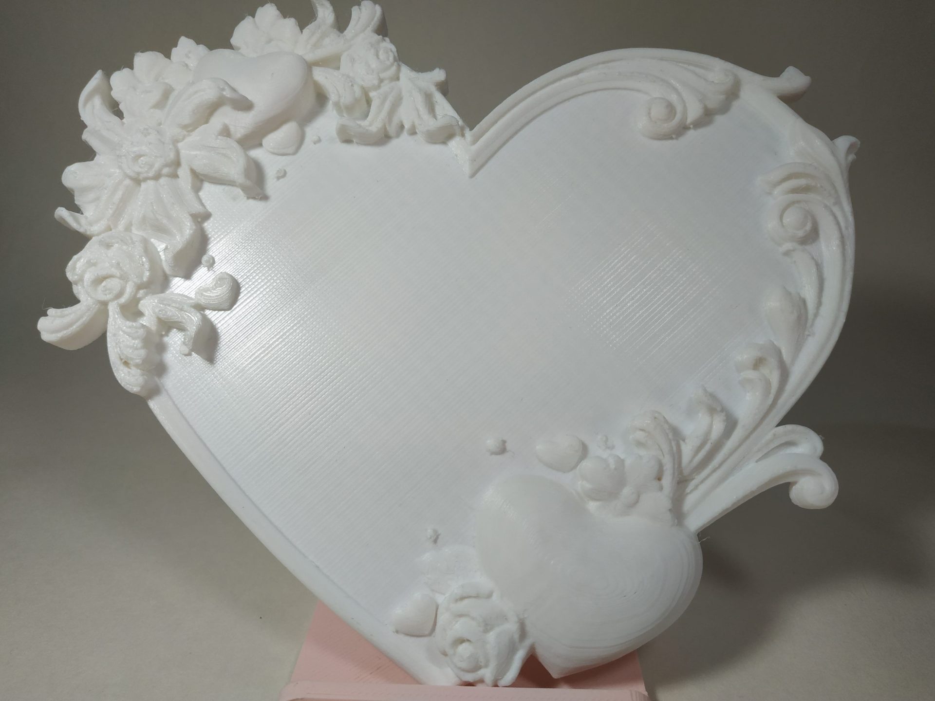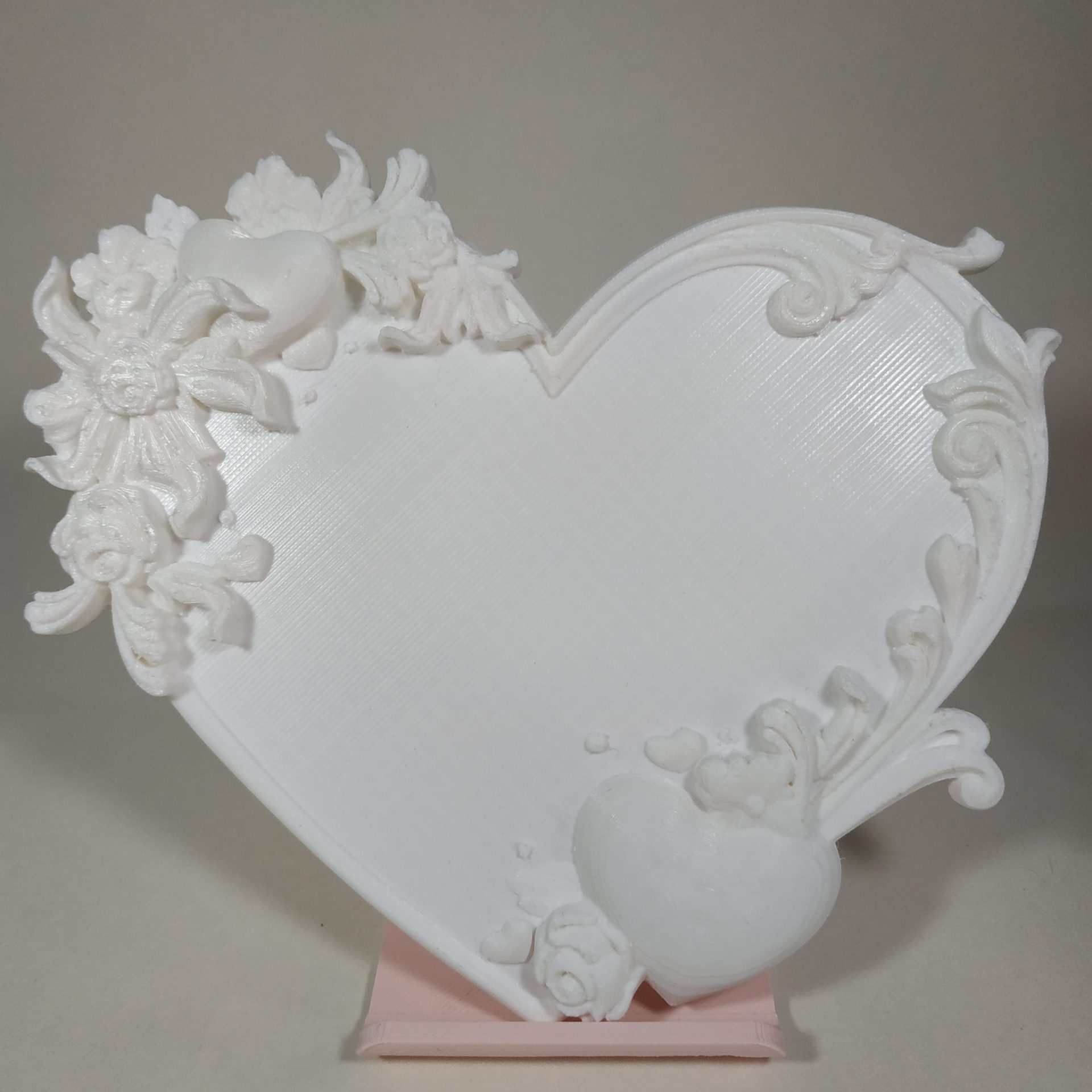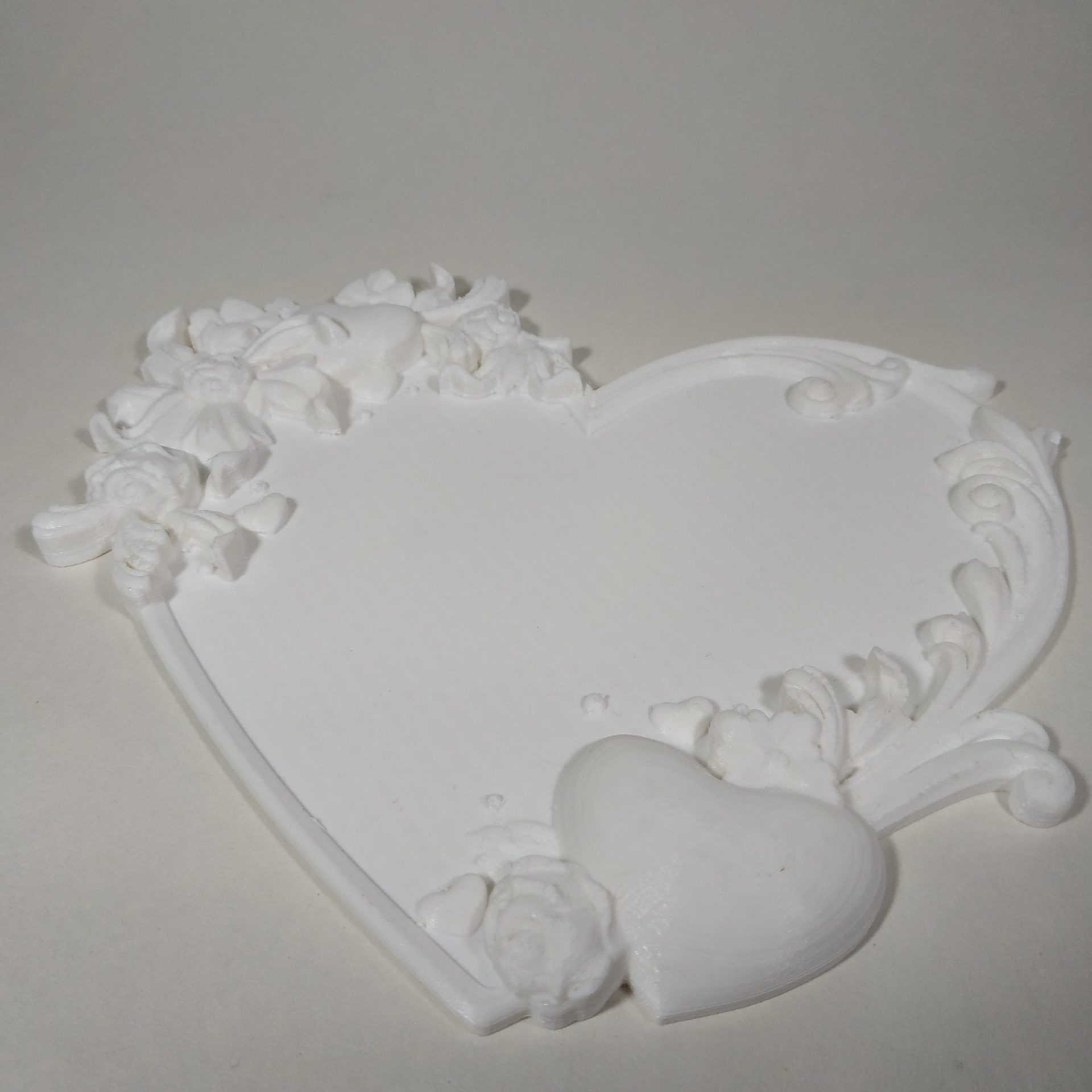 Marco de fotos con forma de corazón y adornos florales para meter una foto dentro, se puede realizar en la medida que se prefiera, color a elegir o blanco listo para pintar al gusto. Modelo actual 17cm ancho x 14 cm de largo. También se puede realizar con el nombre de las habitaciones para hacer cuelgapuertas con nombres, por ejemplo Cocina, baño, salón. etc..