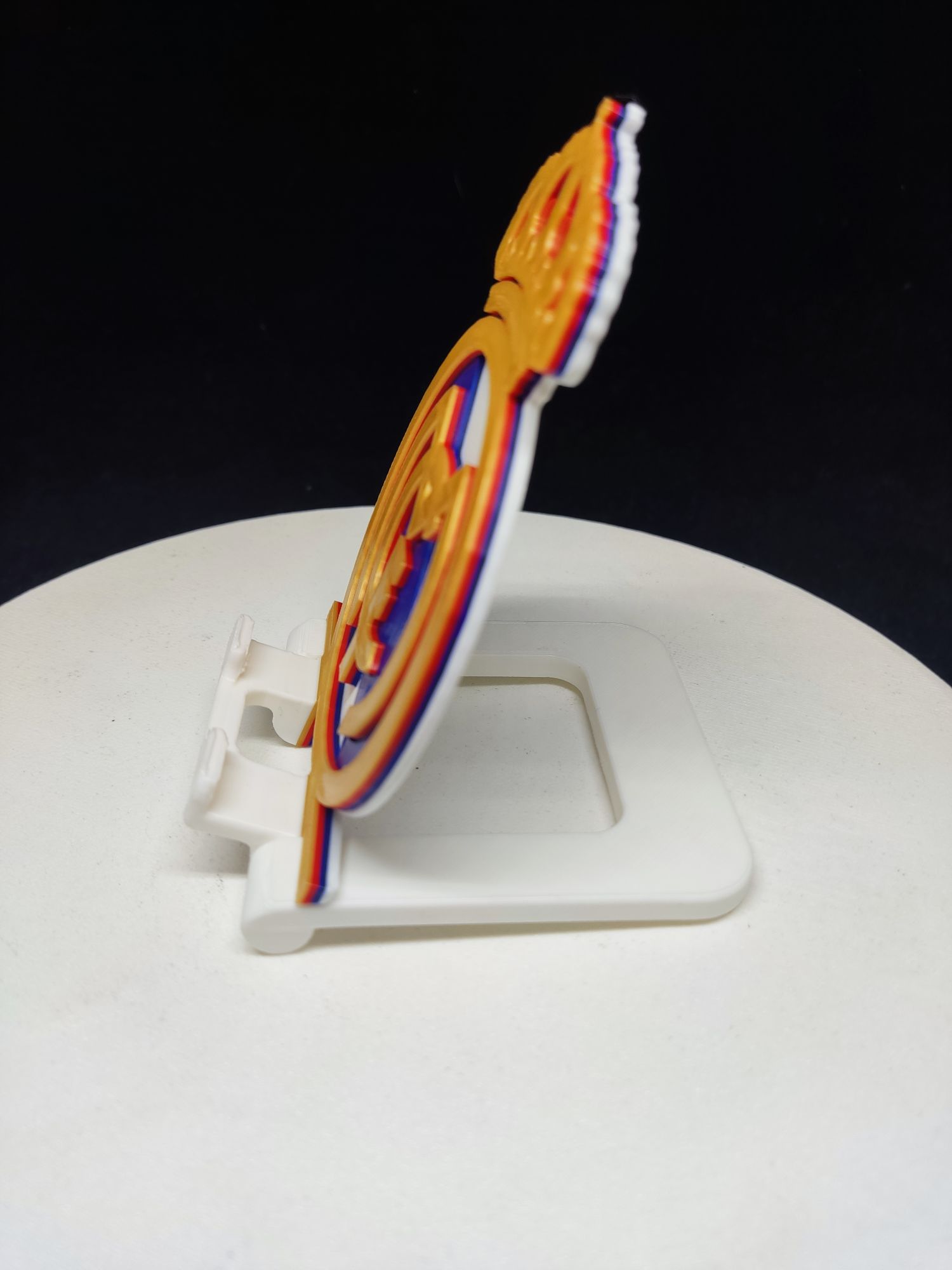 Fabricado con impresión 3D multicolor de alta calidad, combina durabilidad y estilo, mientras ofrece un apoyo estable para tu móvil en cualquier lugar.