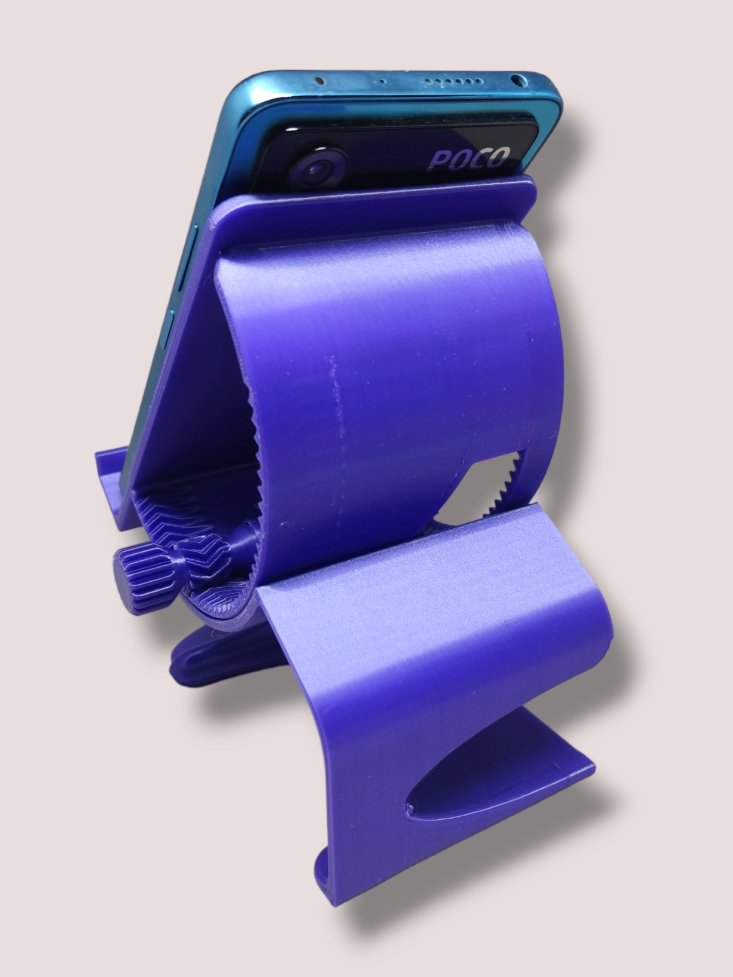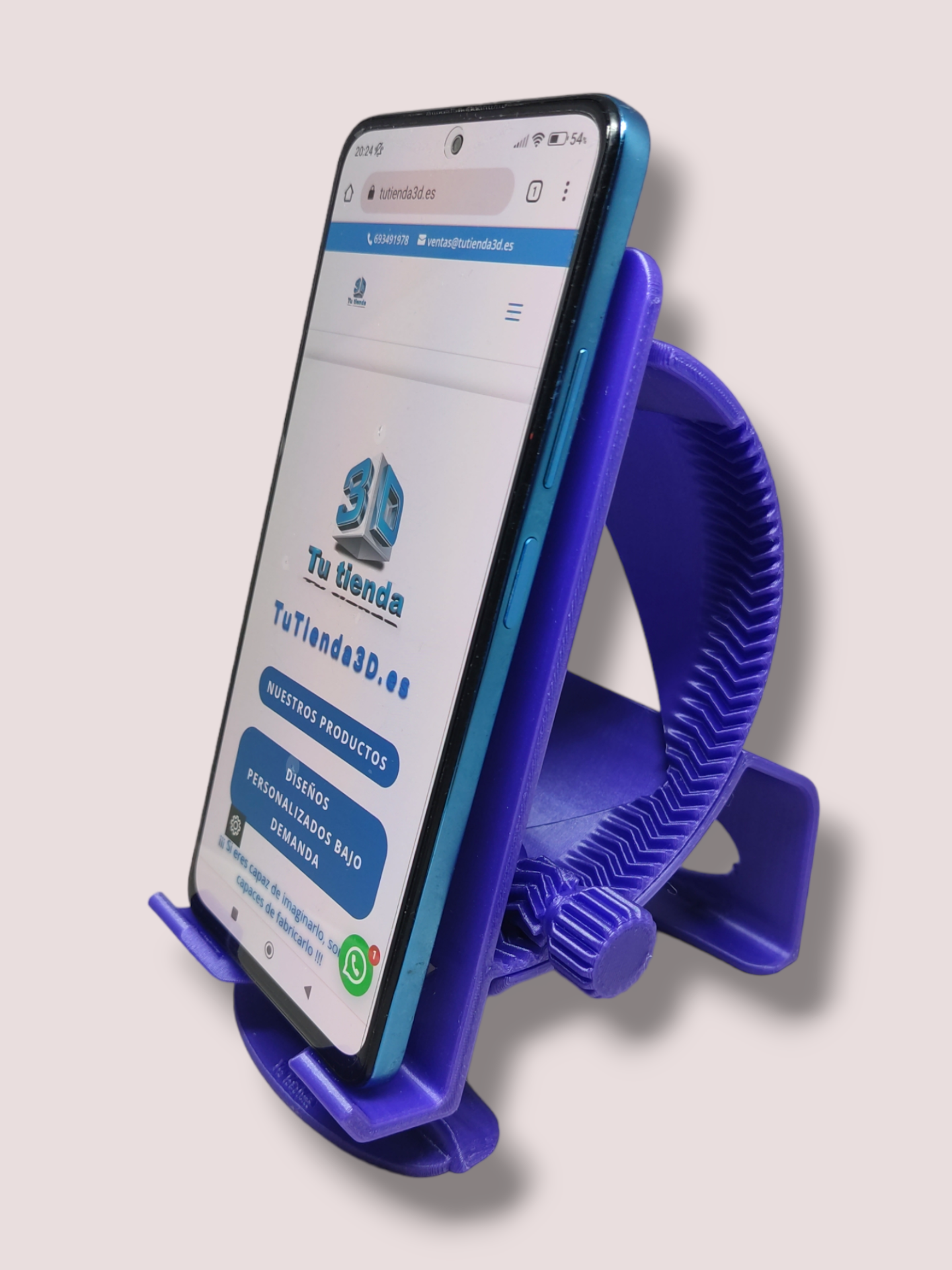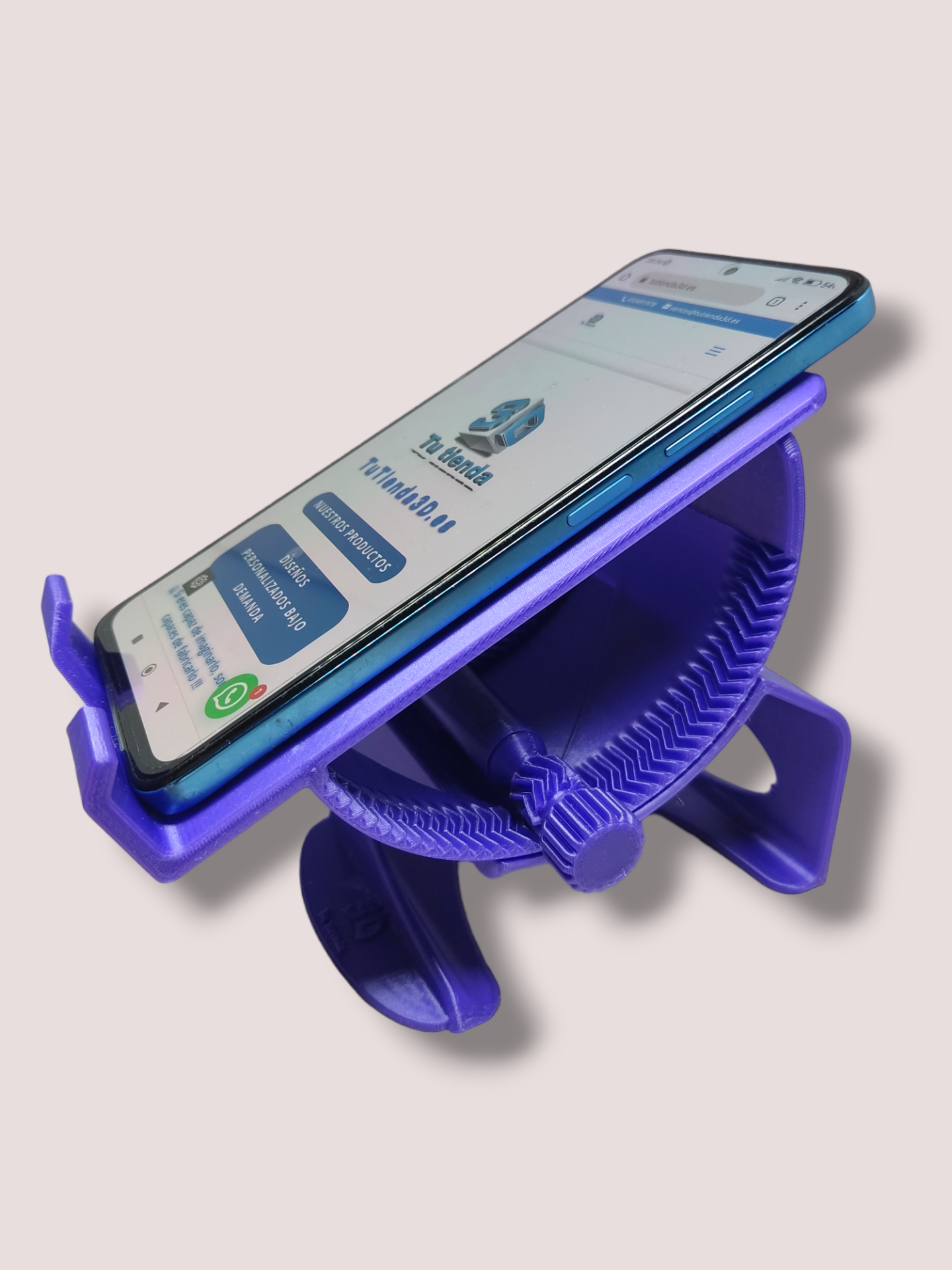 Soporte para movil o Tablet totalmente reclinable con su rueda ajustable lateral.