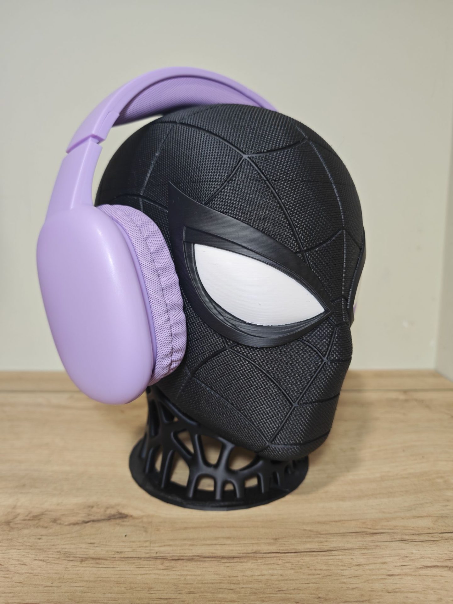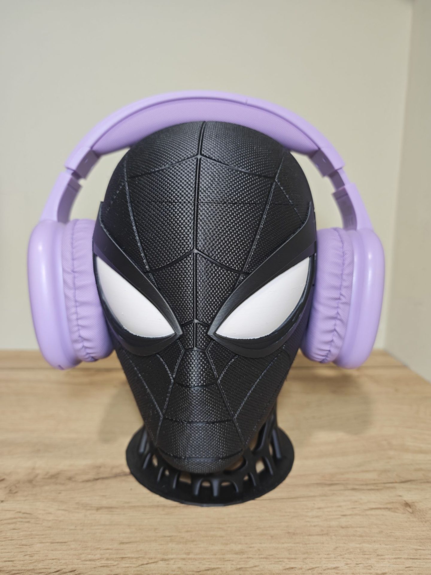 Dale a tu setup un aspecto imponente y minimalista con el soporte de auriculares de Spiderman en su versión Black Suit. Esta pieza, fabricada mediante impresión 3D de alta precisión, es la combinación perfecta entre un accesorio organizador y una escultura de diseño para tu escritorio.
