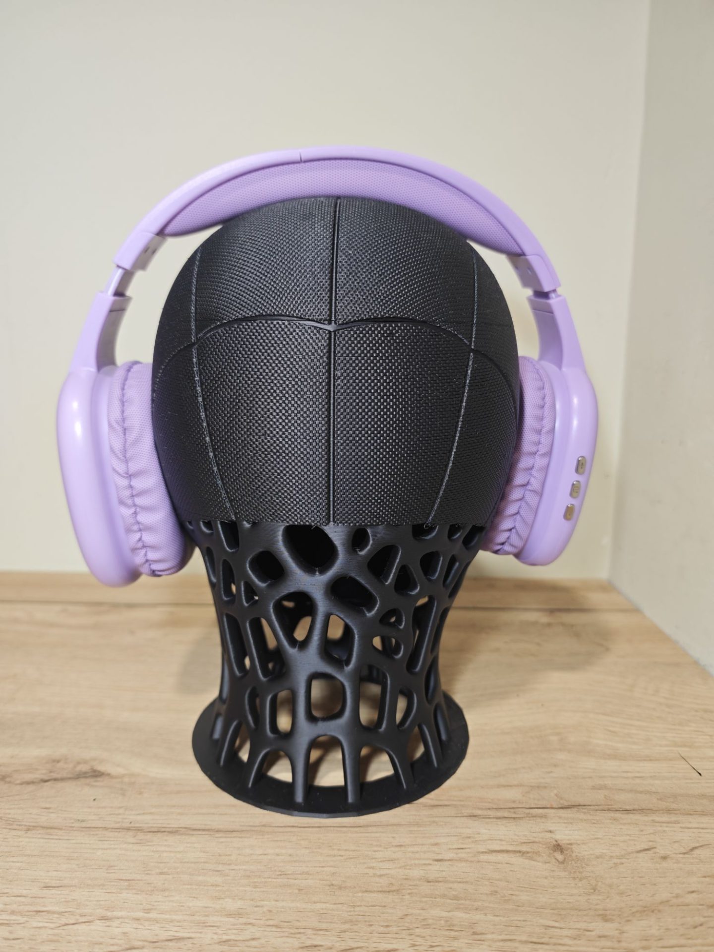 Estabilidad Superior: La base circular con diseño geométrico garantiza un centro de gravedad bajo, permitiendo sostener auriculares de gran formato con total seguridad.