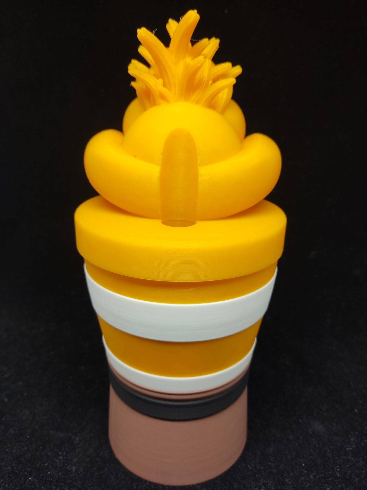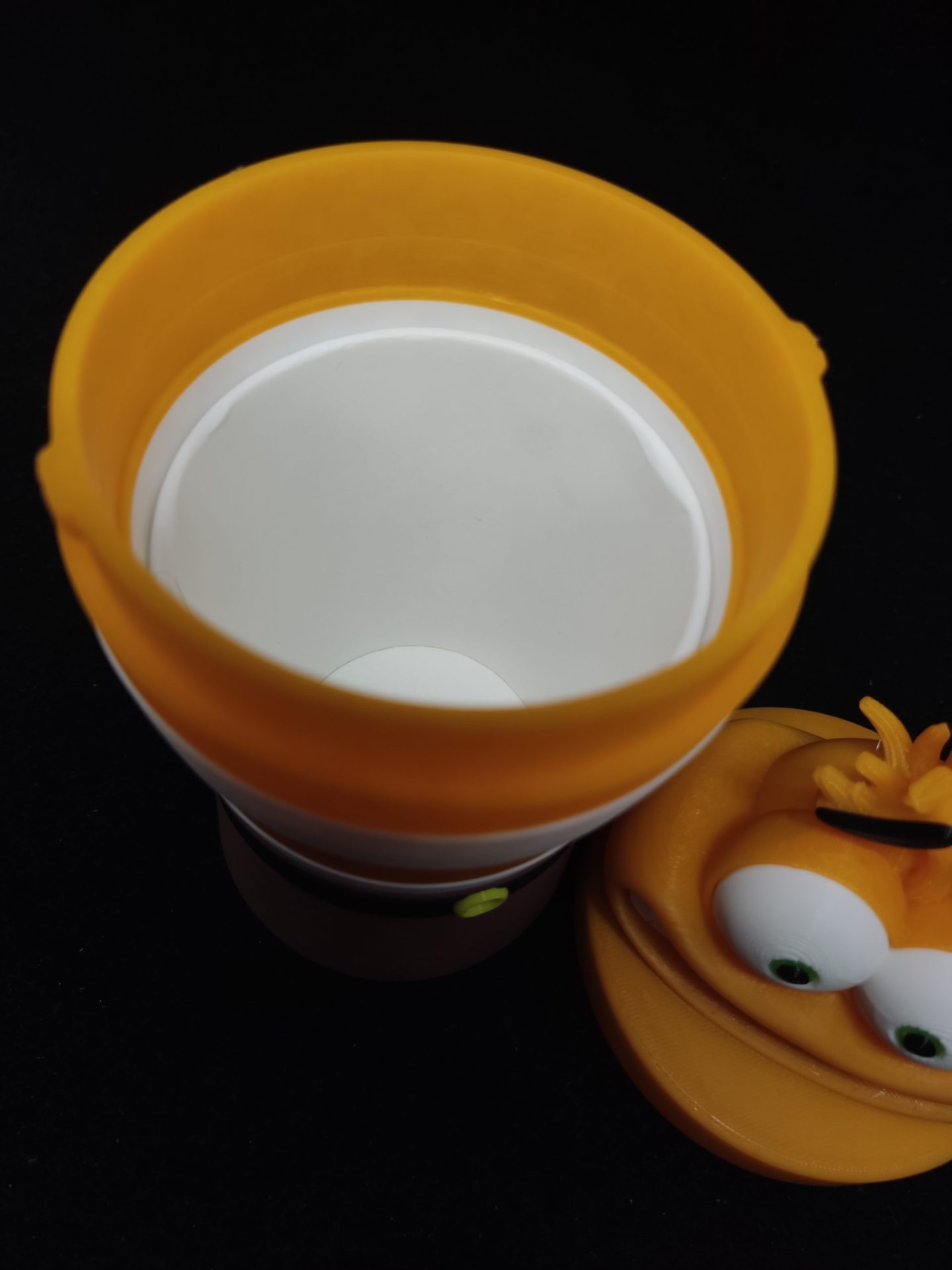 El vaso se abre por la mitad para alojar en su interior un vaso de plástico, incluye orificio para la pajita.